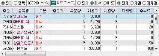 일단 오후 3시 30분이 되어서 수요일의 주식 시장도 마감이 되었고, 대조군인 condition 1번의 매수현황을 보자면, 예수금을 확보한 것이 많아서 인지 몰라도, 일단 확보한 주식이 많은 것을 알 수 있습니다.