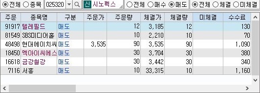 그리고 매도현황을 보면, 실험군인 condition 2번에서도 위 스크린샷과 같이 주문가가 있는 처분하는 종목이 하나 있는 것을 확인할 수 있었습니다.