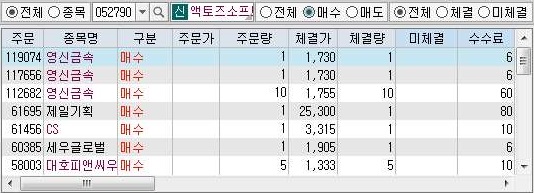 그리고 매도현황을 보면, 실험군인 condition 2번에서도 위 스크린샷과 같이 주문가가 있는 처분하는 종목이 하나 있는 것을 확인할 수 있었습니다.