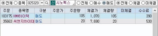 다음으로 condition 1번의 매도현황을 보면, 오로지 매도 주분은 2건 밖에 없기는 한데, 일단 수량은 많기는 많습니다. 이렇게 해서 다음 작업에 들어가 봅니다.