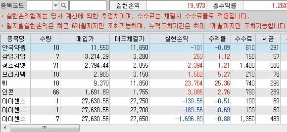 어찌된 것인지 총수익률과 추정자산의 총량이 오히려 감소한 것을 확인할 수 있었습니다. 아무래도 어디서 수익을 얻은 것을 더 많이 떨어지는 것으로 매꿔버리는 종목이 있다는 것 같습니다.