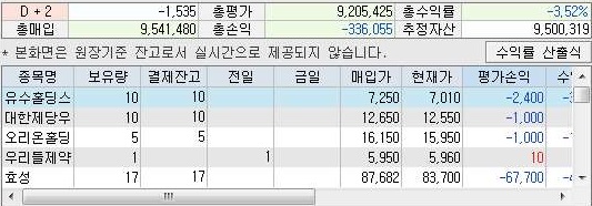 다만 어떻게 여기서 매수한 종목 중에서 매수했다 하면 계속해서 떨어지는 종목이 있는 것인지는 모르겠습니다만, 이래저래 총 수익률과 총손익이 계속해서 떨어지는 현상을 발견할 수 있었습니다. 아무래도 무언가 특단의 조치가 필요해 보이기도 하지만, 어떻게 해야할지 지금으로서는 감도 안 잡히는 상황입니다.