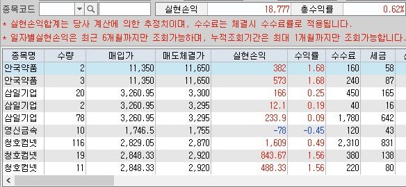 그렇게 해서 수요일이 되는 이날 하루동안 위 스크린샷처럼 1만 8천원의 수익을 올린 것을 확인할 수 있었습니다. 이렇게 해서 계속해서 수익이 나오기만 하면 좋겠습니다만.........