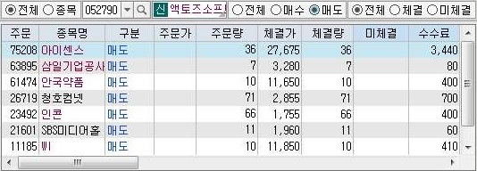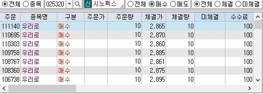 다음으로는 condition 1번의 매도현황을 보고 있습니다. 여기서는 일단 한건의 처분을 빼고는 모두 정상적인 시장가로 거래가 일어나는 것을 확인할 수 있었고, 미체결 거래는 한건도 없었습니다.