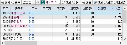 다음으로는 대조군인 condition 1번에서 벌어진 매도에 대해서 한번 알아 보도록 하겠습니다. 일단 이날에는 처분하는 종목은 없었고, 모두 다 시장가로 거래가 되는 종목만이 있었습니다.