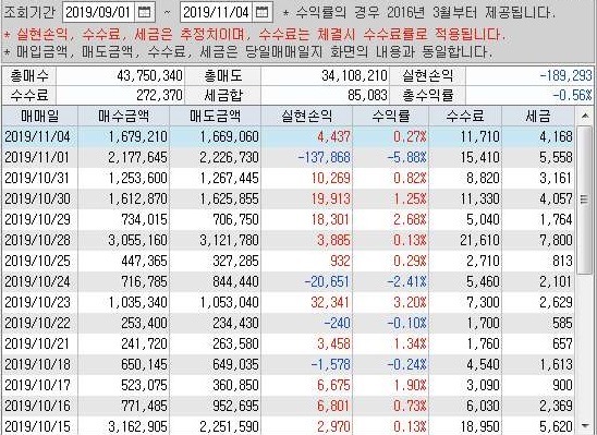 그리고 월요일인 11월 4일에는 3만 5천원의 순 이익이 발생한 것을 확인할 수 있었습니다. 이렇게 해서 나오는 결과에 대해서는 일단 여기까지만 언급하도록 하겠습니다.