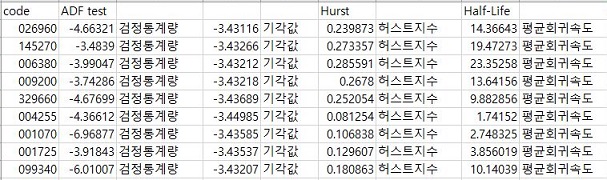 마지막으로 그나마 쓸만해 보이는 찌꺼지 종목들이 3등급 입니다. 이 종목들은 일단 ADF test에서 2와 3등급을 모두 탈락시키도록 합니다.