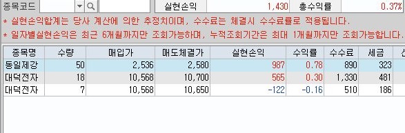그리고 이날의 실현손익을 확인해 보니까, 그럭저럭 실현손익 자체는 만족할 만한 상황으로 나오는 것을 확인할 수 있었습니다. 문제는 이게 아니라.........