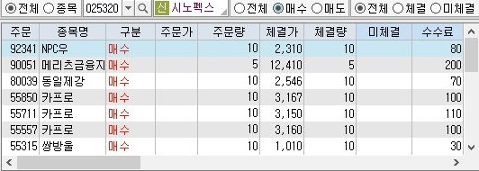 이제 실험군을 살펴볼 차례입니다. 일단 실험군을 살펴보면, 위 스크린샷에서 볼 수 있는 것과 같이 일단은 주문량 10개로 매도 한건이 있는 것을 확인할 수 있었습니다.