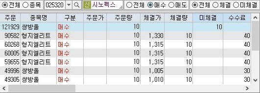 그리고 나서 한번 이날은 미체결이 나왔는지 여부를 살펴 보도록 하겠습니다. 이렇게 해서 나온 미체결이 한 종목에서 나왔는 것을 확인할 수 있었습니다.