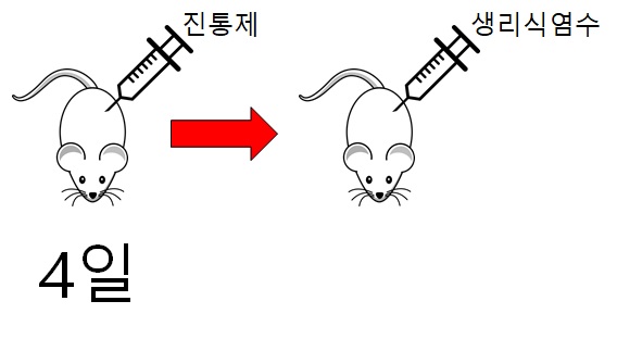 먼저 연구팀은 쥐의 뒷다리로 가는 허리에서 부터 뻗어가는 신경을 수술적인 방법으로 실로 묶어서, 고통에 과잉반응하도록 만들었습니다. 그리고 나서 이런 쥐의 뒷다리를 막대기로 찌르면 즉각 뒷다리에 통증을 느낀 쥐는 다리를 움츠리는 반응을 보이게 됩니다. 쥐들을 이런 상태로 만들어 놓은 다음에, 4일 동안 쥐들에게 '진통제'를 주사한 다음에 막대로 뒷다리를 찌르는 작업을 하였으며, 4일 이후에 '위약'으로 생리식염수를 주사하고 막대기로 뒷다리를 찔렀습니다.
