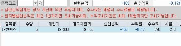 일단 이날은 위 스크린샷에서 볼 수 있는 것처럼 일단 1600원 정도로 수익을 내는 것을 볼 수 있기는 있었습니다. 그러나 문제는 따로 있으니.........