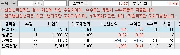 일단 이날은 위 스크린샷에서 볼 수 있는 것처럼 일단 1600원 정도로 수익을 내는 것을 볼 수 있기는 있었습니다. 그러나 문제는 따로 있으니.........