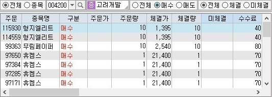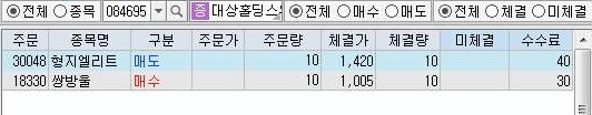 이제 한번 실험군을 살펴볼 차례입니다. 실험군에서는 1종목의 매수와 1종목의 매도만이 금요일 하루종일 일어난 것을 확인할 수 있었습니다.