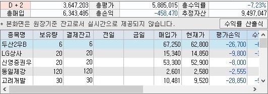 그리고 나서 대조군에서 당일 실현손익을 한번 살펴 보도록 하면, 위스크린샷에서 볼 수 있는 것과 같이 일단 손해가 발생한 것을 확인할 수 있었습니다.