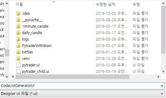 그리고 나서 프로젝트가 있는 폴더에다가 이 UI파일을 CodeListGeneratorUI라는 이름으로 저장을 해 주도록 합니다. 이렇게 해서 일단 유저 인터페이스는 디자인이 되었습니다.