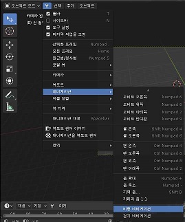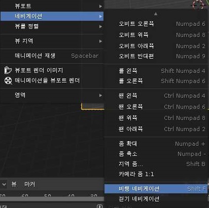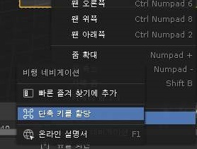 그리고 자유자제로 한번 작업창의 화면을 이동시킬 수 없는지 알아보기 위해서 위 스크린샷과 같이 뷰 메뉴에서 네비게이션으로 들어가게 되면 비행 네비게이션이라고 있습니다. 그런데 과거 버젼과는 다르게 요즘 버젼에서는 단축키가 지정되어 있지 않는 것을 볼 수 있습니다.