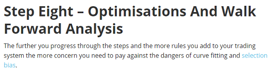 그리고 나서 다음 단계가 최적화를 하는 단계인데, 이 단계에서 제안하는 것도 제게는 처음 듣는 내용이 되었습니다. 가령 예를 들어서 30일 평균을 이용한 전략이 있다고 하면, 이 전략에서 28, 29, 31, 32일 등의 평균을 적용해도 제대로 된 성과가 나와야만 합니다. 그리고 Walk Forward Analysis에 대해서는 여기서 당장 다루기에는 너무 한개의 포스팅을 소모해야 할 정도로 규모가 크다는 것만 지금은 언급하고 넘어가고자 합니다.