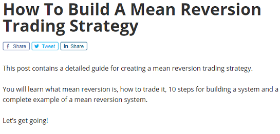 지난번 포스팅에서 언급을 했다 시피 평균회귀를 mean reversion이라고 보통 표현을 하는데, 이 전략을 사용해서 자동으로 주식 매매를 하는 프로그램을 만들려 하니, 일단 만드는 법에 대한 자료가 영어로 있는 것을 발견했습니다.