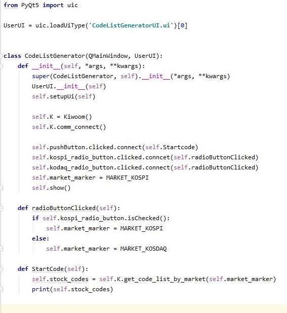 일단 이렇게 해서 우선 제가 만들어 놓은 UI대로 유저 인터페이스가 나오는 데는 성공할 수 있었습니다. 이제 남은 것은 바로 다음의 단계로, 종목의 코드 리스트를 가지고 와서 저장을 하는 것 입니다.