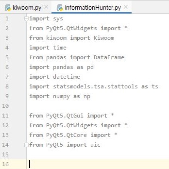 그리고 나서 다음으로 pytraderwithbrain에서 있는 kiwoom.py를 복사해서 그대로 가지고 오도록 했습니다. 이렇게 해서 일단 작업이 되기는 되었습니다.