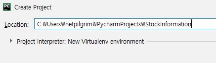 먼저 작업을 하기 위해서 일단 프로젝트를 새로 생성해 주도록 합니다. 이름은 역시나 StockInformation이라고 지어 주도록 합니다.