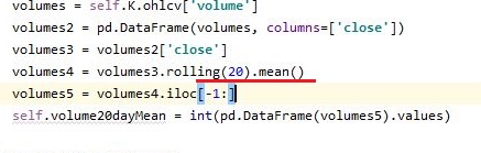 처음에는 잘 되는가 싶었더니, 중간에 에러가 발생했는데, 문제가 어디인가 했더니, 바로 위 스크린샷처럼 20일 이동평균선을 구하는 곳에서 에러가 터졌습니다. 해결책은 어이 없게도 mean뒤에다가 ()를 붙여주는 것 입니다.