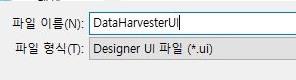 다음으로는 사용을 편하게 만들어 주기 위해서, 일단 Qt Designer에서 유저 인터페이스를 만들어 주도록 합니다. 일단 여기서는 주로 사용하기 위한 버튼이 크게 2가지 입니다.
