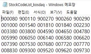 일단 이렇게 해서 일단 코스닥의 전체 리스트를 얻기는 얻었습니다. 이제 이 종목에 대한 종목의 명칭과 현재가가 얼마나 되는지를 알아보는 시간이 왔습니다.