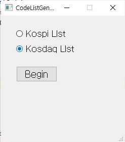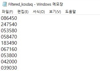 먼저 코드 리스트를 생성하는 프로그램으로 가서, 이번에는 코스피가 아니라 코스닥을 한번 지정해서 놓고 난 다음에 작업을 이어가도록 해 봅니다.