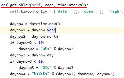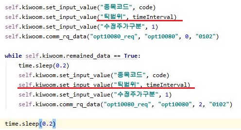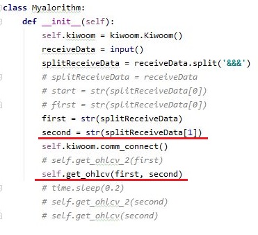 그리고 기존에는 없었는 second항목을 한번 만들어 주도록 합니다. 정확히는 주석처리된 것을 도로 복원시킨다고 해야 할 듯 합니다. 그리고 기존에 있던 get_ohlcv()메서드에서 없던 변수를 하나 더 받도록 만들어 줍니다.