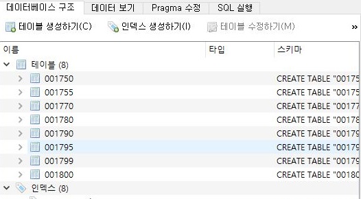 다음으로 데이터 베이스를 여러번 생성하는 실험을 했기 때문에, 제대로 8개의 종목을 한 곳에 모은 것도 맞는지 일단 확인을 해 보았습니다.
