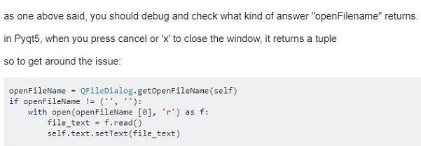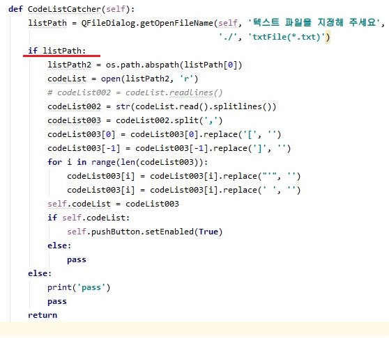 먼저 저렇게 PyQt5에서 QFileDialog.getOpenFileName() 항목에서 아무런 값이 없으면 그냥 pass하기만 하고 pass라는 문구를 출력하라고 만들었지만, 제대로 작동을 하지 않았습니다.