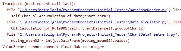 하지만 또 다른 에러가 기다리고 있었습니다. 여기서 나오는 에러는 바로 int형식으로 NaN을 바꿀 수는 없다는 것을 이야기 하고 있습니다. 그래서 이렇게 된 김에 하는 수 없이 이 부분도 손을 보기로 했습니다. 다만........ 지금와서 생각을 해 보니까, 일단 여기서도 어느정도 헛다리를 짚었다고 할 수 있습니다.