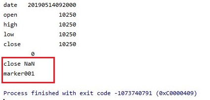그렇게 했더니, 위 스크린샷에서 볼 수 있는 것처럼 일단 내용물이 NaN으로 나오는 것을 확인할 수 있었습니다. 일단 이렇게 해서 close의 값을 가직 오는데는 대충이나마 성공한 것으로 보입니다.