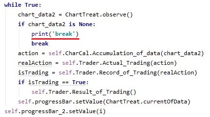먼저 위 스크린샷에서 나오는 print()함수를 이용해서, 한번 어느 타이밍에서 while루프를 빠져 나오는 지를 확인해 보도록 합니다.
