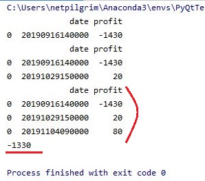 그리고 나서 위 스크린샷을 보면 알 수 있도록, 새로운 종류의 메서드를 만들어 주는데, 여기서는 손익만을 뽑아내서 sum()이라는 명령어를 이용해서 한번 작업에 들어가 보도록 합니다.