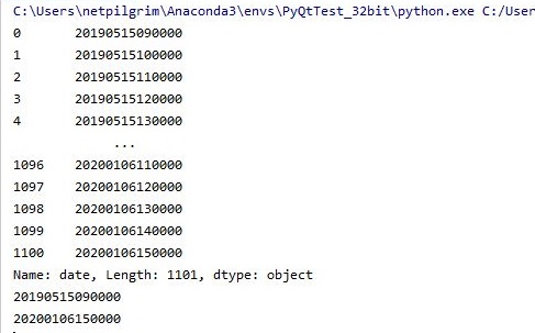 그래서 이번에는 위 스크린샷처럼 일단 date항목만을 추려낸 다음, 첫 날짜와 끝 날짜를 가지고 오도록 했습니다. 그리고 이게 제대로 작동을 하기는 하는지 보도록 했습니다.
