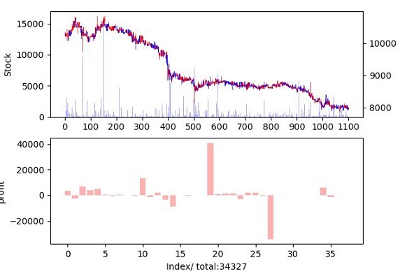 마지막 8번째 종목의 결과입니다. 이 결과를 보면 알 수 있듯이 일단, 캔들차트의 캔들은 제대로 나오도록 어느정도 개선이 되었는데, 문제는 손익거래에 있어서 너무 많은 레이블이 문제입니다.