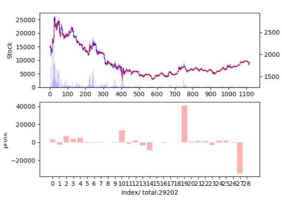 이번 그림에서 일단 캔들차트가 제대로 나오는 것을 확인할 수 있었습니다. 그리고 아랫쪽의 손익을 표시한 곳도 제대로 나오는 것을 확인할 수 있었습니다.