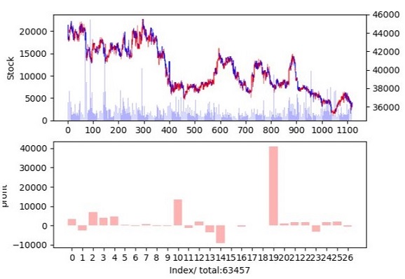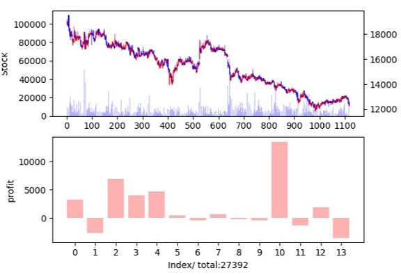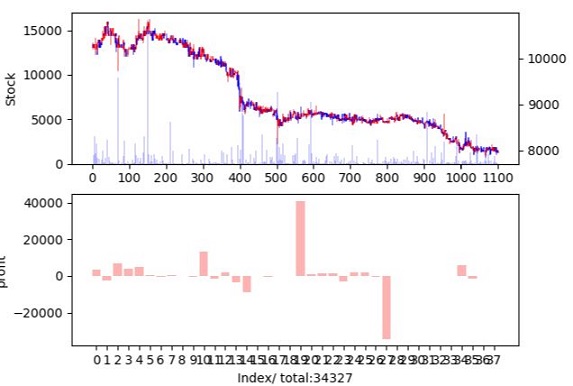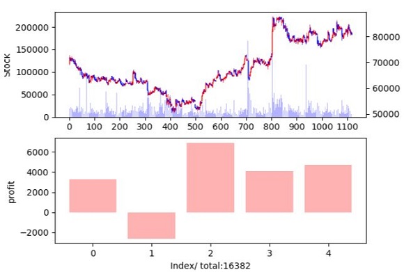 이번 그림에서 일단 캔들차트가 제대로 나오는 것을 확인할 수 있었습니다. 그리고 아랫쪽의 손익을 표시한 곳도 제대로 나오는 것을 확인할 수 있었습니다.
