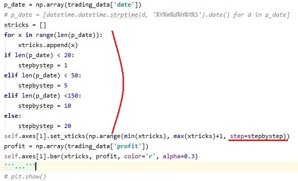 그래서 이 상황을 타개해 보고자, 이번에는 위 스크린샷에서 볼 수 있는 것처럼 일단 전체적인 레이블이 달릴 tick의 길이에 따라서 레이블의 간격을 달리해 주는 것 입니다.