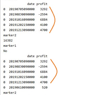 그래서 한번 print()함수를 이용해서 어디서 이런 에러가 나오고 있는지 한번 알아보니, 전체적인 손익을 구하기 위해 존재하는 손익 데이터 베이스가 누적이 되는 문제가 발생한 것을 확인할 수 있었습니다.