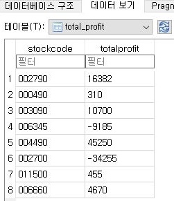 결과에서는 제대로 음수 = 총 손익이 손해로 나온 결과가 제대로 나오는 것을 확인할 수 있었습니다. 이렇게 해서 결과가 해결이 된 것 같았습니다.