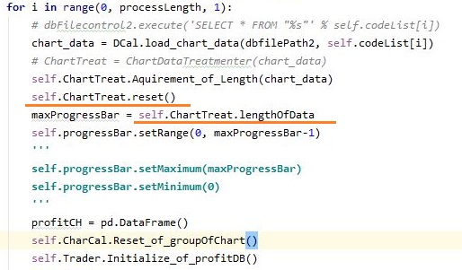 다음으로는 리셋을 하기 위한 메서드도 for루프 시작 지점에서 불러 오도록 하고, 기존의 클래스를 가르키던 변수는 다른 메서드에 있기 때문에 건너뛰기 위해서 self를 붙여 주도록 합니다.
