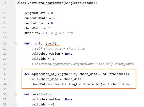 그래서 특단의 조치를 취하기로 했습니다. 먼저 클래스가 객체화 될 때 마다 초기화가 되었던 변수를 아예 떼어내서 별도의 메서드에서 초기화가 되도록 설정을 해 줍니다.