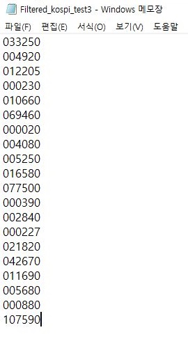그래서 이번에는 20개의 종목을 가지고서 한번 돌려 보아서, 여기서 에러가 나오는 것인지 아닌지에 대해서 먼저 작업을 걸어 보도록 했습니다.