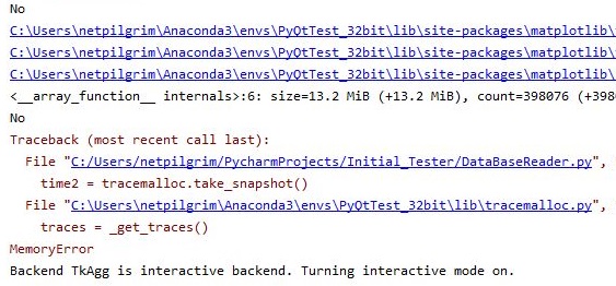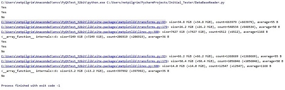 거기다가 마무리로 한번 파이참의 디버그 모드를 이용해서 정확하게 무슨 에러인지 알아보니, 위 스크린샷에서 언급한 바와 같이 메모리 에러였습니다. 다만 이게 그냥 메모리 에러가 아니라, 어찌된 것인지 제가 짠 코드랄까 matplotlib이라는 모듈에서 에러가 나오고 있습니다. 물론 이 라이브러리 자체의 문제라기 보다는 아마 제가 다루면서 실수가 있은 듯 합니다만, 일단 이 에러라는 것은 알았으니, 이제 수정하려 가 보도록 하겠습니다.