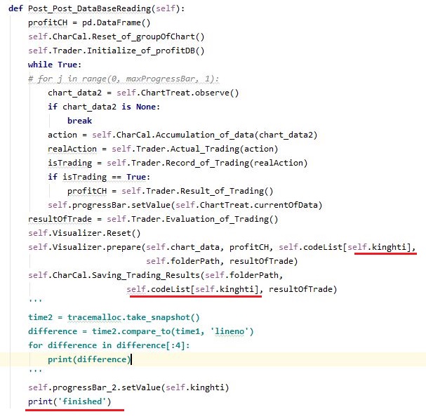 먼저 위 스크린샷에서 볼 수 있는 것처럼 QThread역할을 하는 클래스에서 신호를 송출할 때, 이번에는 서브 프로세스 - 한개의 종목에 대해서 읽어서 처리하는 과정에 대해서 한번 신호를 보내보고자 합니다.