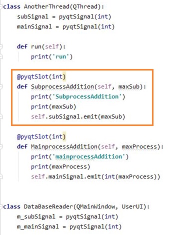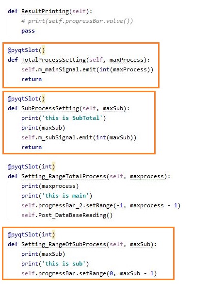 먼저 위 스크린샷에서 볼 수 있는 것처럼 QThread역할을 하는 클래스에서 신호를 송출할 때, 이번에는 서브 프로세스 - 한개의 종목에 대해서 읽어서 처리하는 과정에 대해서 한번 신호를 보내보고자 합니다.